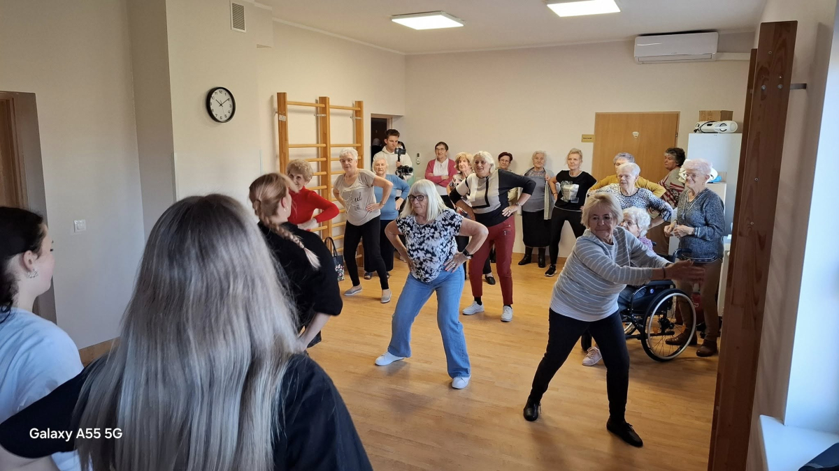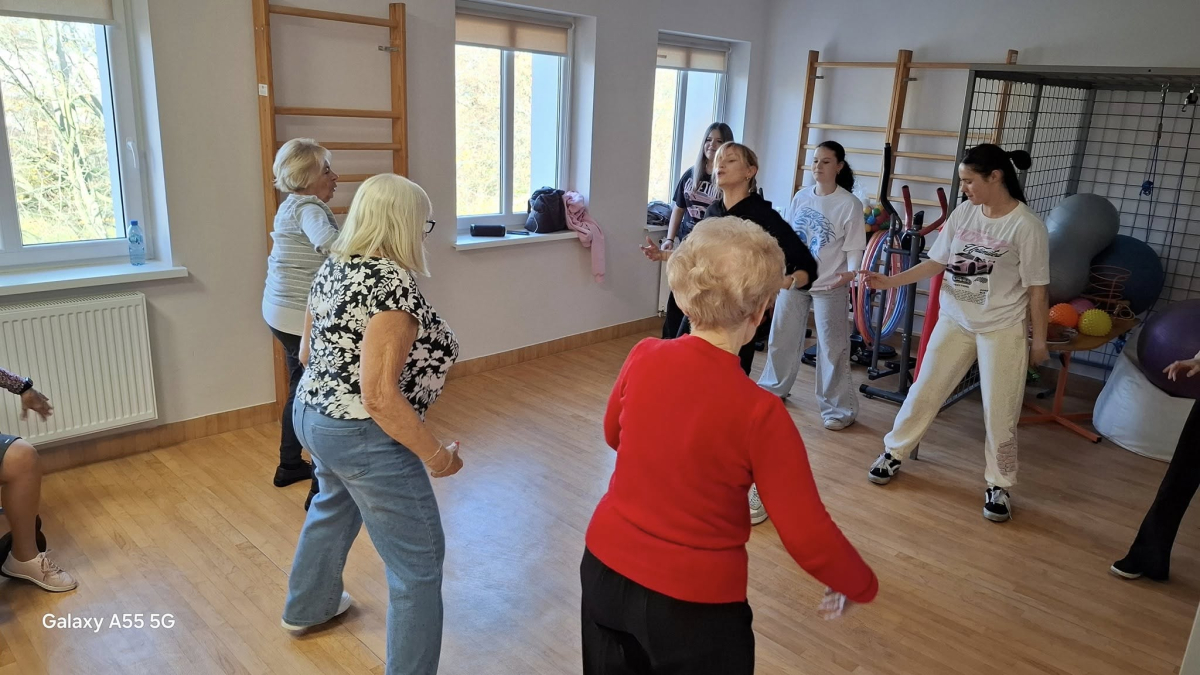 Tego samego dnia seniorki wzięły udział w energetycznych zajęciach zumby prowadzonych przez uczennice CKZiU w Zbąszynku. Młodzież porwała uczestniczki do tańca, zapewniając dużą dawkę ruchu, endorfin i świetnej zabawy.
