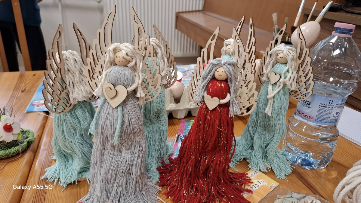 Podczas warsztatów z makramy powstawały przepiękne anioły wykonane techniką wiązania sznurka. Zajęcia dostarczyły dużo satysfakcji i pozwoliły rozwijać zdolności manualne.