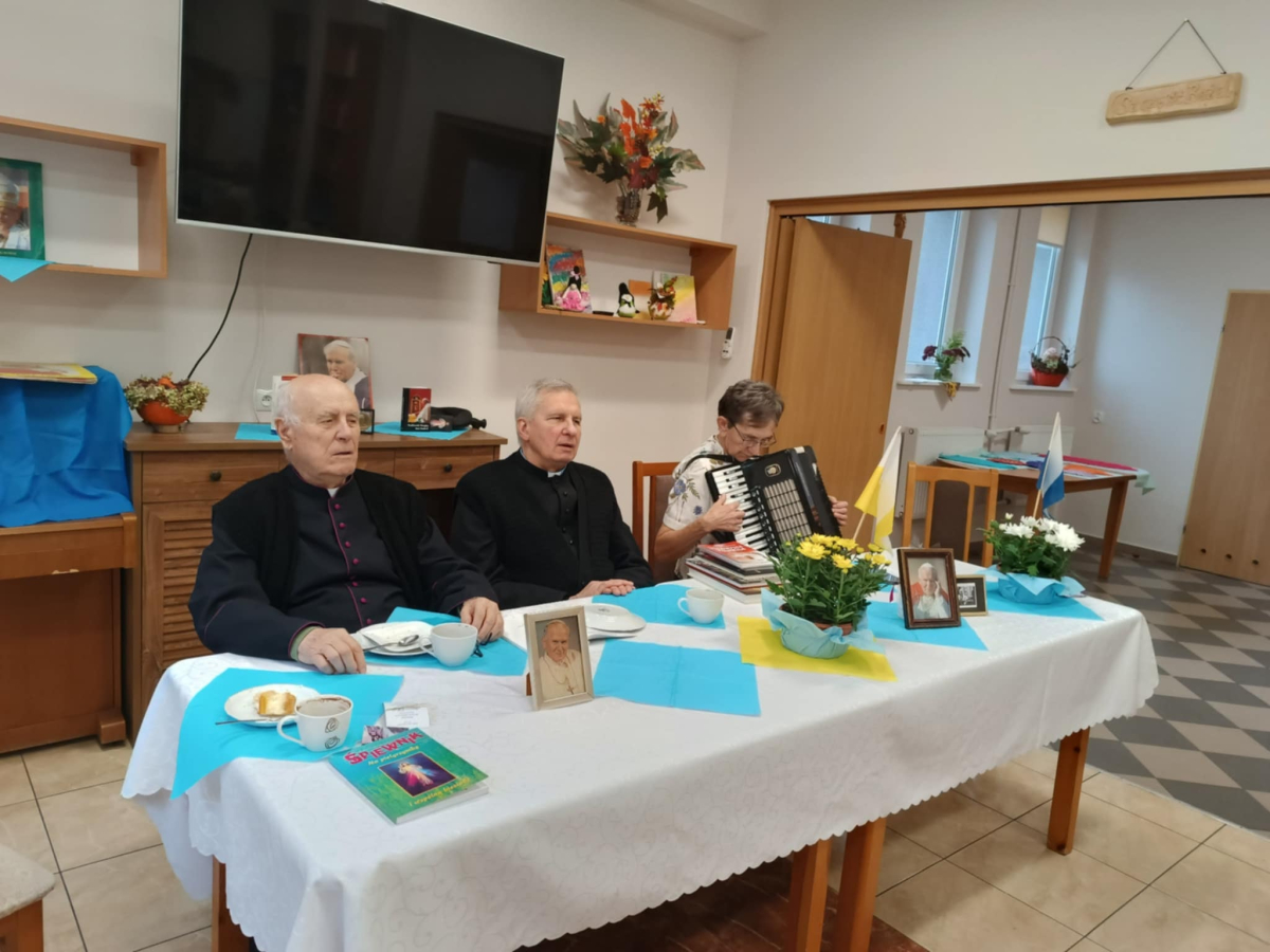 Podczas obchodów Dnia Papieskiego seniorów odwiedzili księża z Kosieczyna. Odbyły się modlitwy, wspólne śpiewy i rozmowy, które nadały spotkaniu uroczysty i refleksyjny charakter.