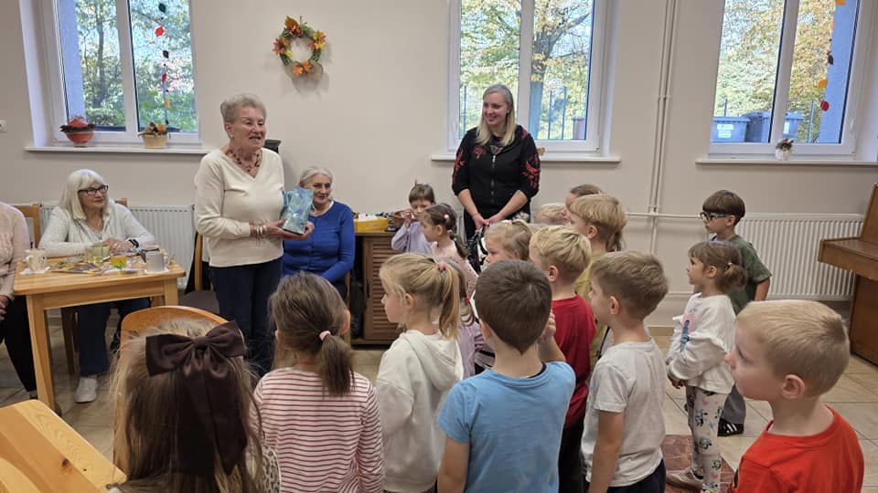 Każdy senior otrzymał pamiątkowy magnes oraz życzenia od najmłodszych. Spotkanie było pełne radości, wzruszeń i międzypokoleniowej integracji. Dziękujemy Przedszkolakom, Nauczycielom i Opiekunom za tę piękną inicjatywę.