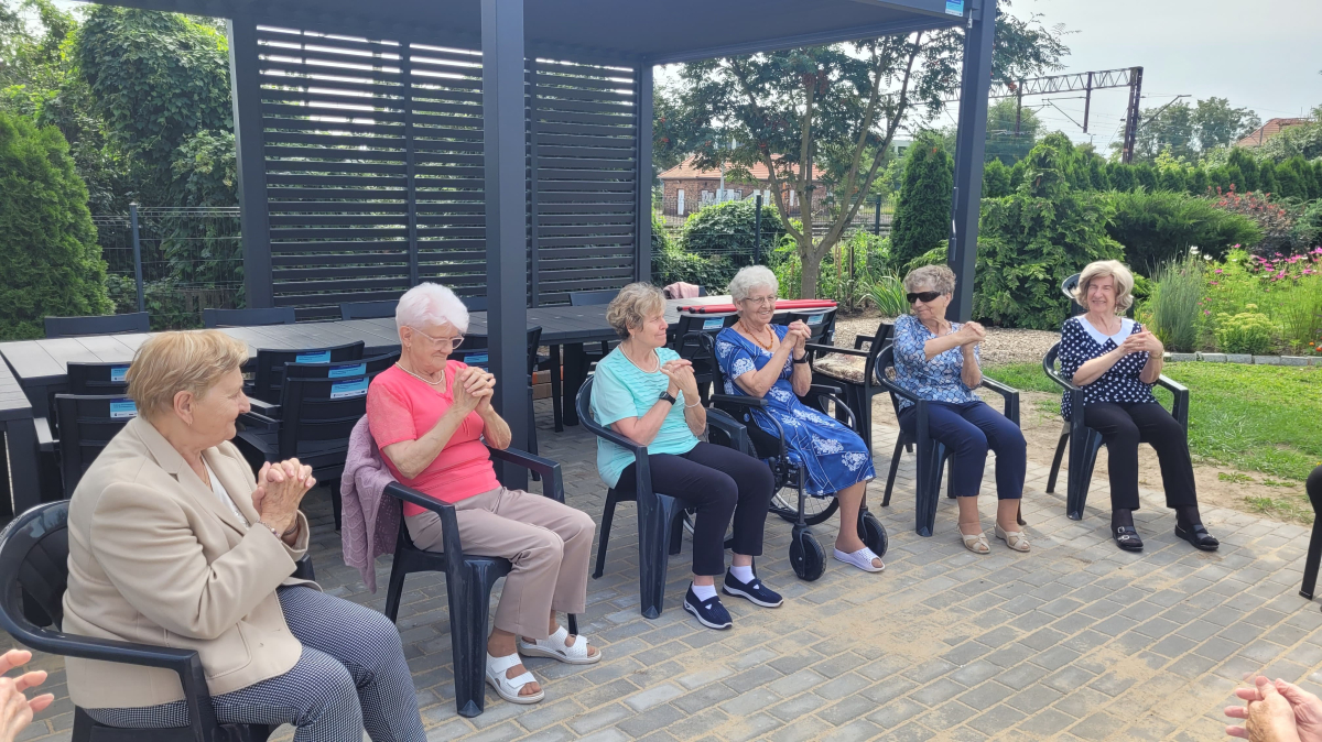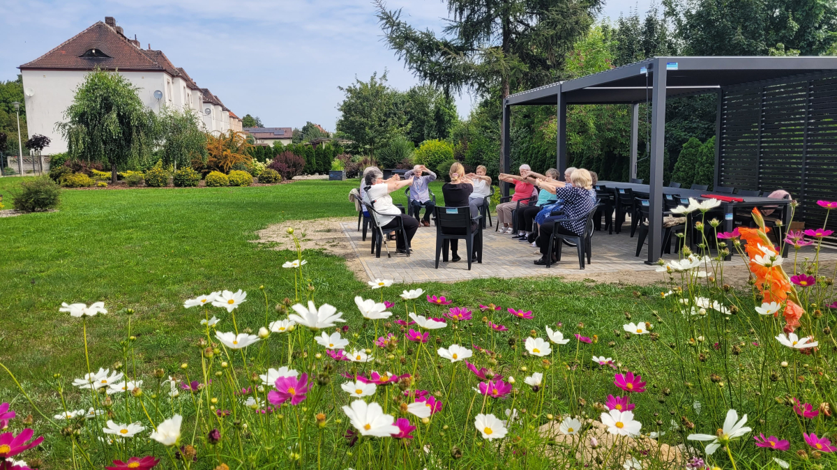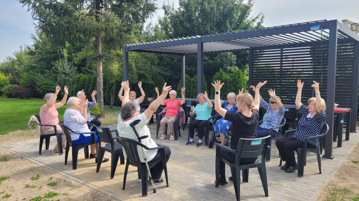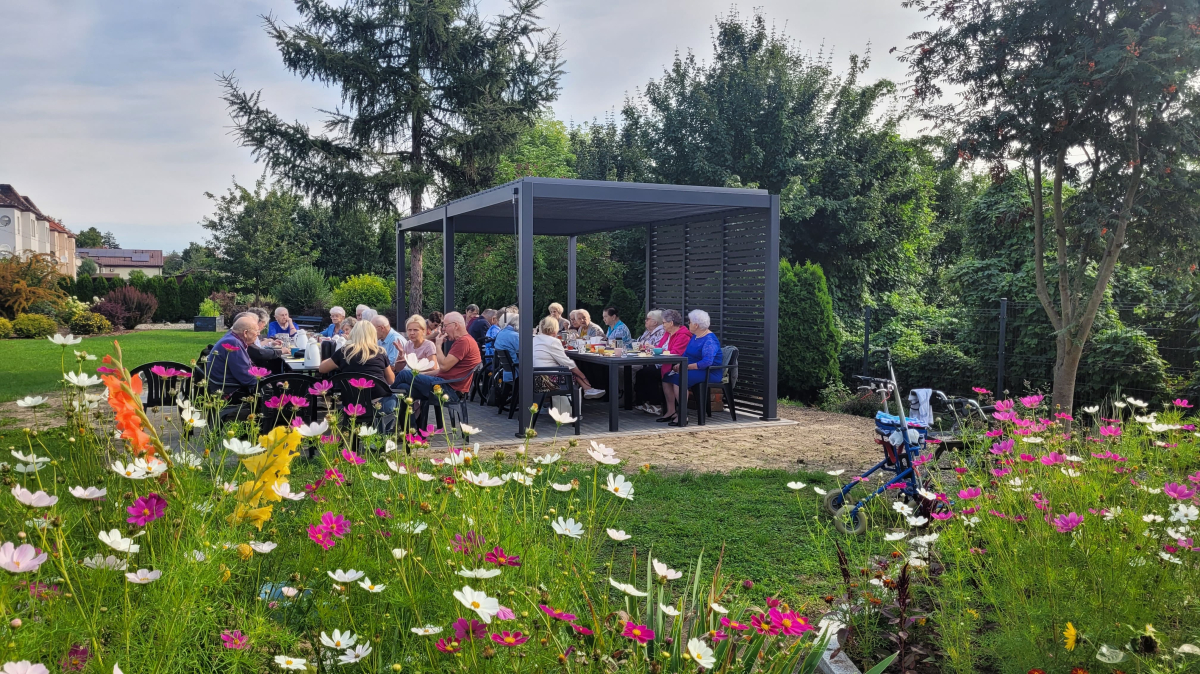Dzięki nowej pergoli w ogrodzie powstało przytulne, zacienione miejsce, które sprzyja rozmowom, odpoczynkowi i integracji. Do dyspozycji seniorów pojawiły się także nowe stoły i krzesła, co umożliwiło swobodne prowadzenie zajęć na świeżym powietrzu.
