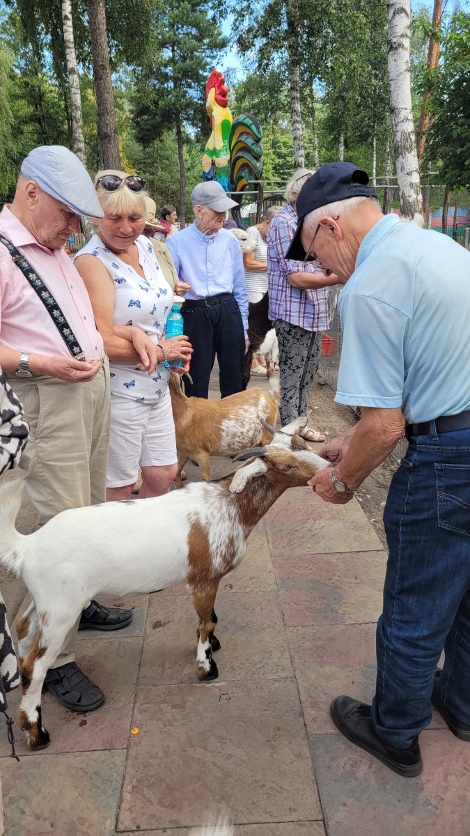 Nasi seniorzy spędzili cudowny dzień w Siedlisku Józefówka w Sątopach. Towarzyszyły im sympatyczne zwierzęta – kozy, owce, alpaki, lamy, a nawet małpki i lemury! Największą atrakcją było możliwość karmienia zwierząt – radości i śmiechu nie brakowało! Po spacerze wśród zagrody przyszedł czas na małą ucztę – chrupiące gofry i aromatyczna kawa smakowały wszystkim wyśmienicie. To była wycieczka pełna uśmiechów, dobrej energii i wspólnych wspomnień!