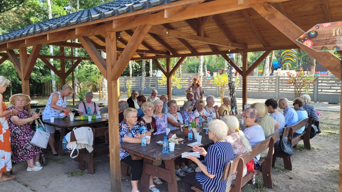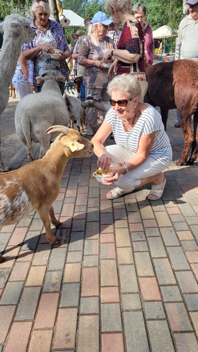 Nasi seniorzy spędzili cudowny dzień w Zagrodzie Rodzinnej Siedlisku Józefówka w Sątopach. Towarzyszyły im sympatyczne zwierzęta – kozy, owce, alpaki, lamy, a nawet małpki i lemury!