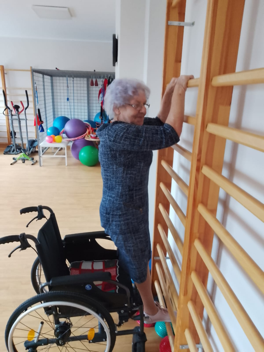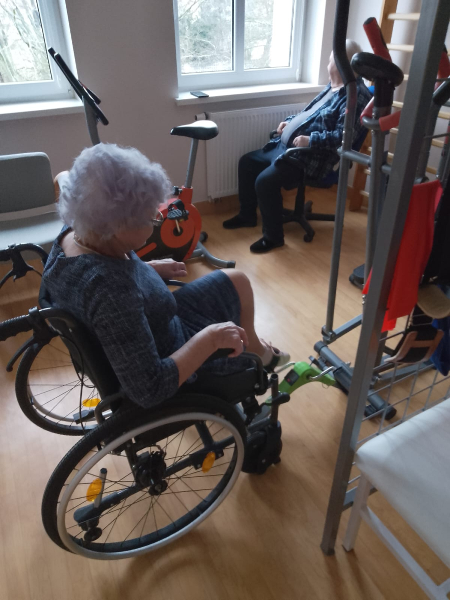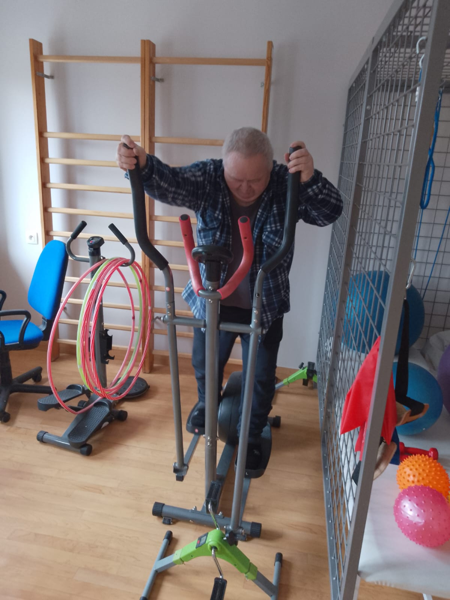 Mieszkańcy Mieszkań Wspomaganych dbają o swoją sprawność i formę, regularnie ćwicząc na sali gimnastycznej. Ćwiczenia dostosowane do możliwości uczestników pomagają wzmacniać kondycję, poprawiać równowagę oraz utrzymywać dobrą sprawność na co dzień.