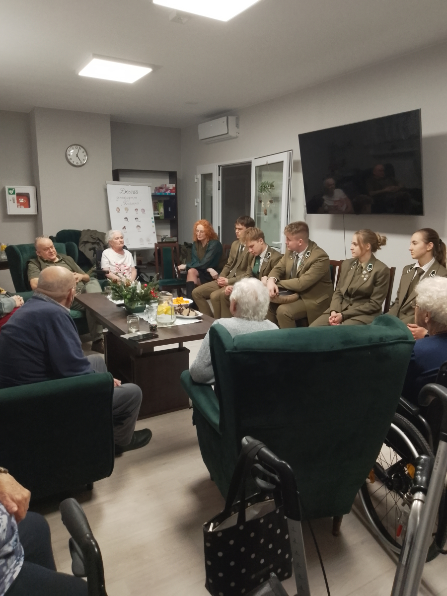 Podczas spotkania młodzież opowiedziała o bogatej historii szkoły – od jej powstania, aż po współczesne kierunki kształcenia. Seniorzy mogli także poznać zasady polowań, tradycje leśników oraz usłyszeć sygnały myśliwskie, zaprezentowane na przyniesionych instrumentach.