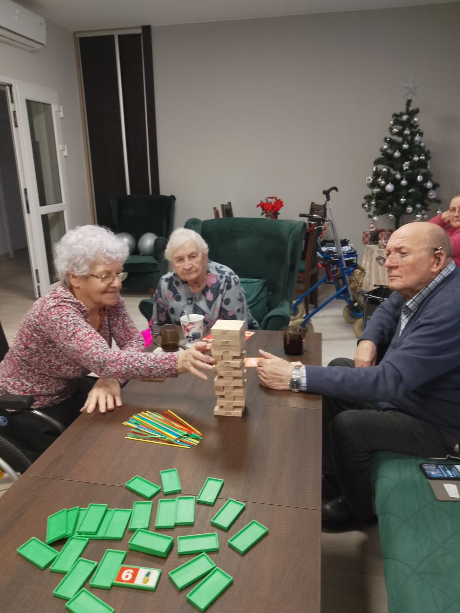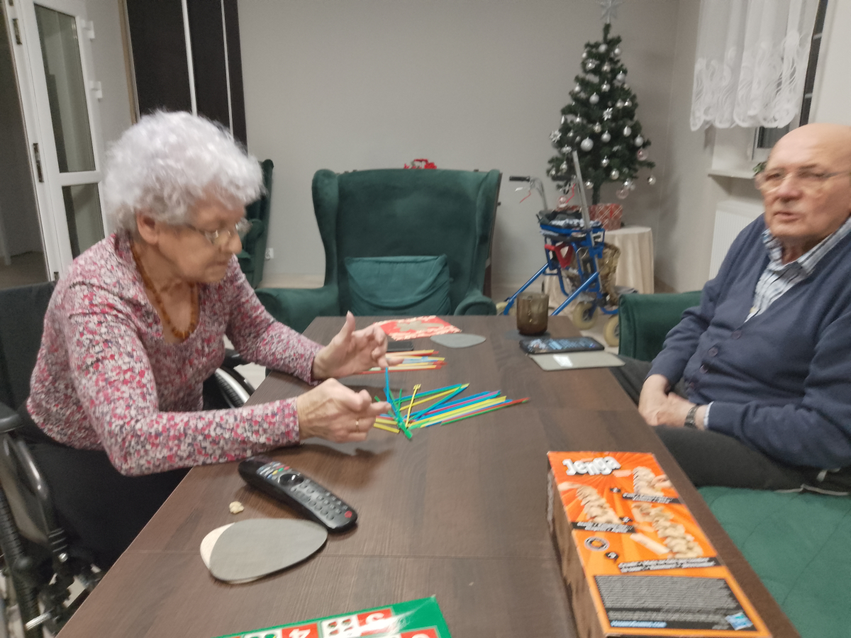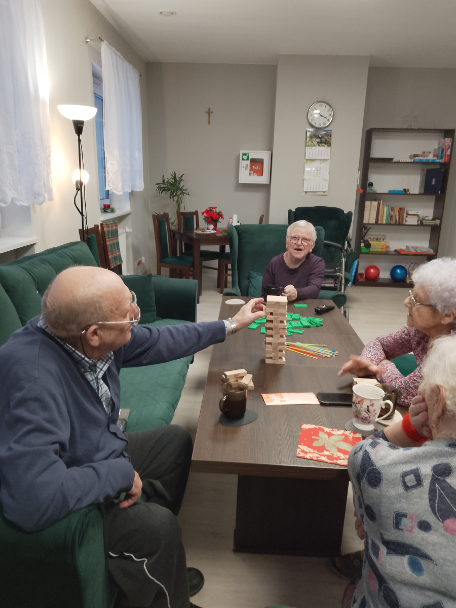 Mieszkańcy Mieszkań Wspomaganych aktywnie spędzają długie zimowe wieczory – często umilają sobie czas, grając w przeróżne gry planszowe i towarzyskie. Ostatnim hitem okazały się rozgrywki w jengę oraz domino, które dostarczają mnóstwo emocji i zdrowej rywalizacji.