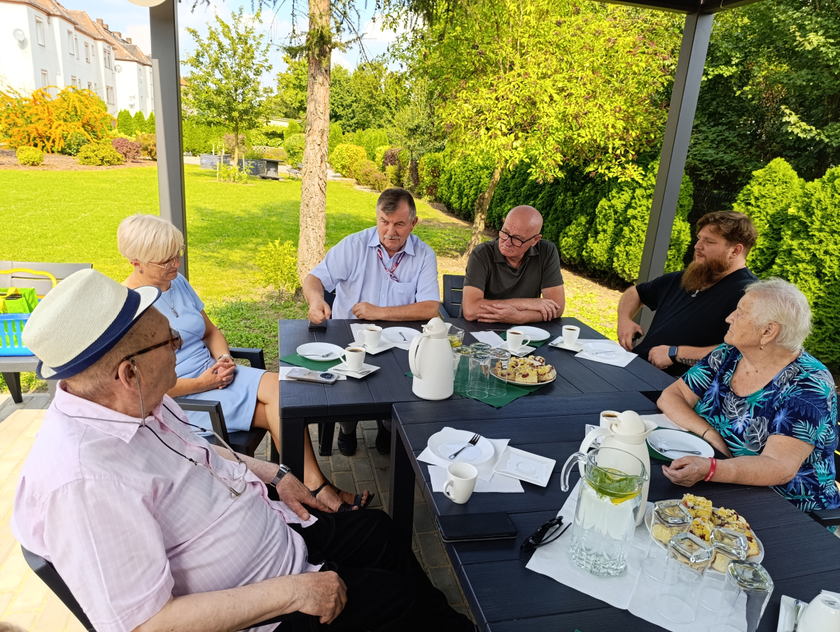 Z tej okazji przygotowano piękny tort, a przy kawie nie brakowało wspomnień, wzruszeń i uśmiechów. Spotkanie odbyło się w ogrodzie, pod przepiękną, nową pergolą, która stworzyła wyjątkowy klimat tej uroczystości.