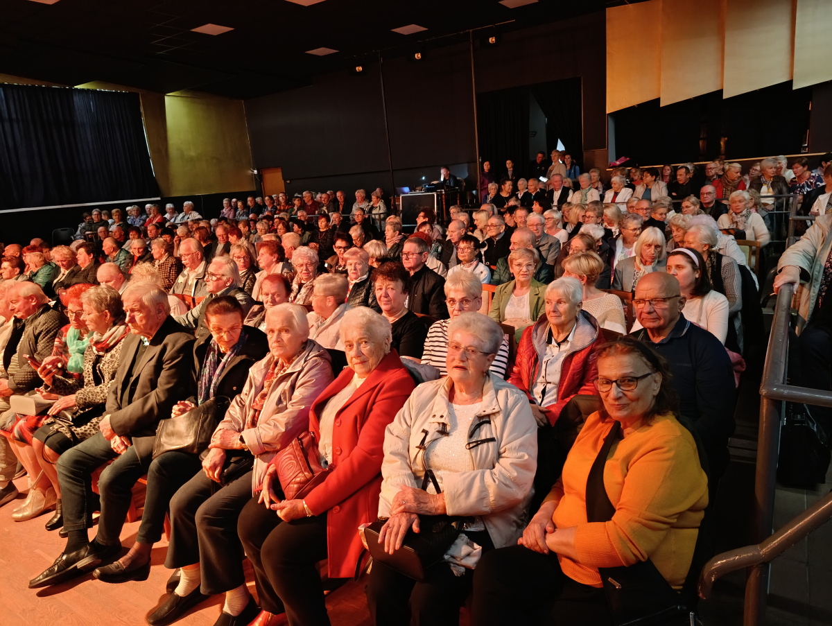 Seniorzy tłumnie przybyli na koncert, tworząc wyjątkową, ciepłą atmosferę.