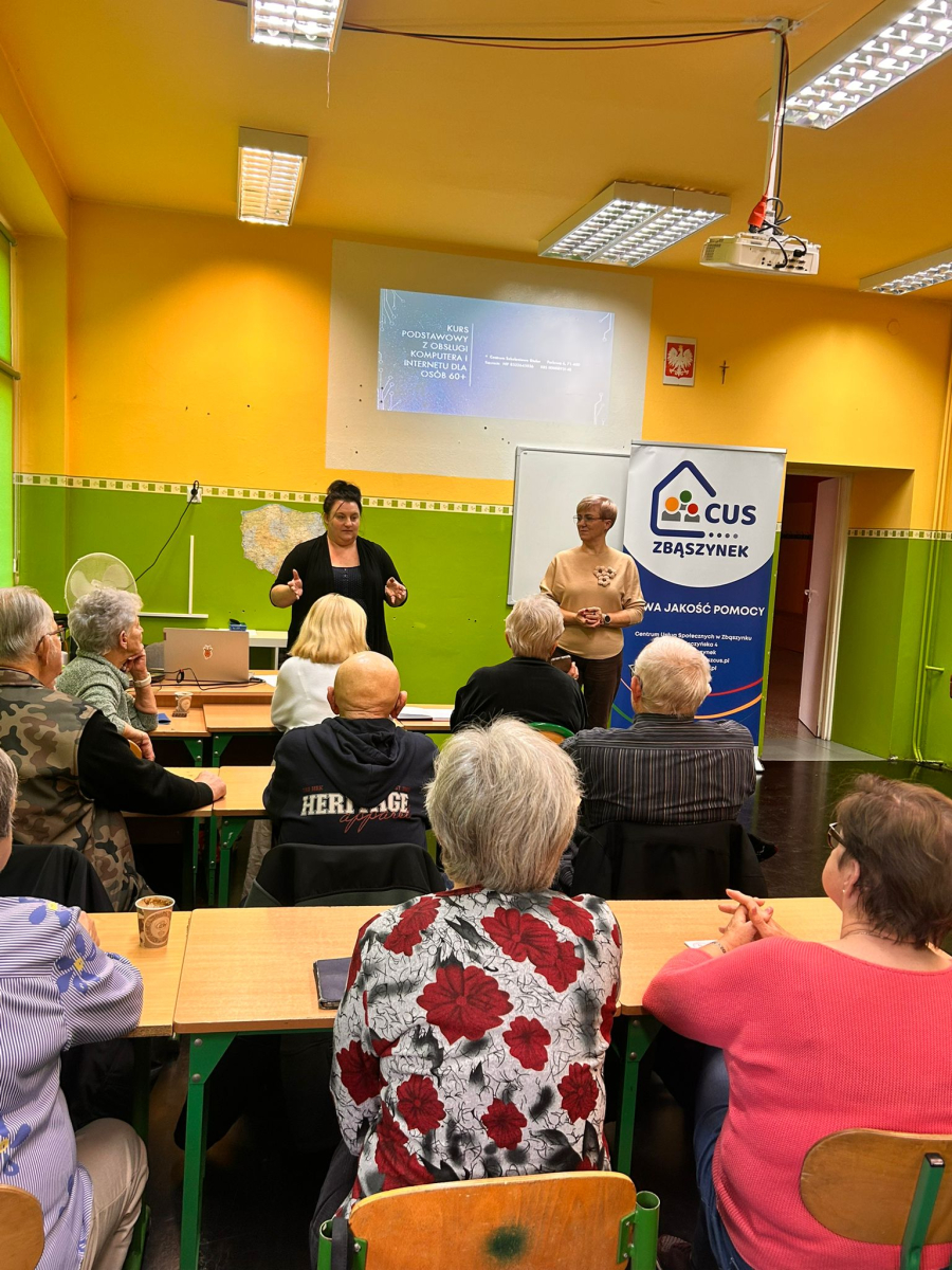 Zajęcia odbywają się w Szkole Podstawowej im. Powstańców Wielkopolskich w Zbąszynku, która zapewnia uczestnikom komfortowe warunki do nauki i pracy na komputerach. Serdecznie dziękujemy dyrekcji i pracownikom szkoły za życzliwość oraz zaangażowanie w organizację kursu. Koordynatorem szkolenia na terenie gminy jest Centrum Usług Społecznych w Zbąszynku, które konsekwentnie wspiera rozwój kompetencji cyfrowych mieszkańców oraz przeciwdziała wykluczeniu cyfrowemu wśród seniorów. Realizacja kursu stanowi kolejny krok w budowaniu aktywnej, świadomej i cyfrowo samodzielnej społeczności lokalnej.