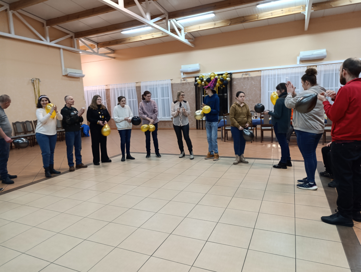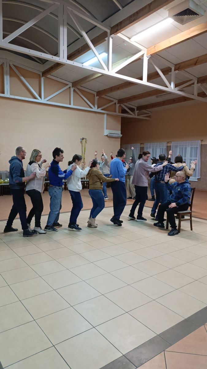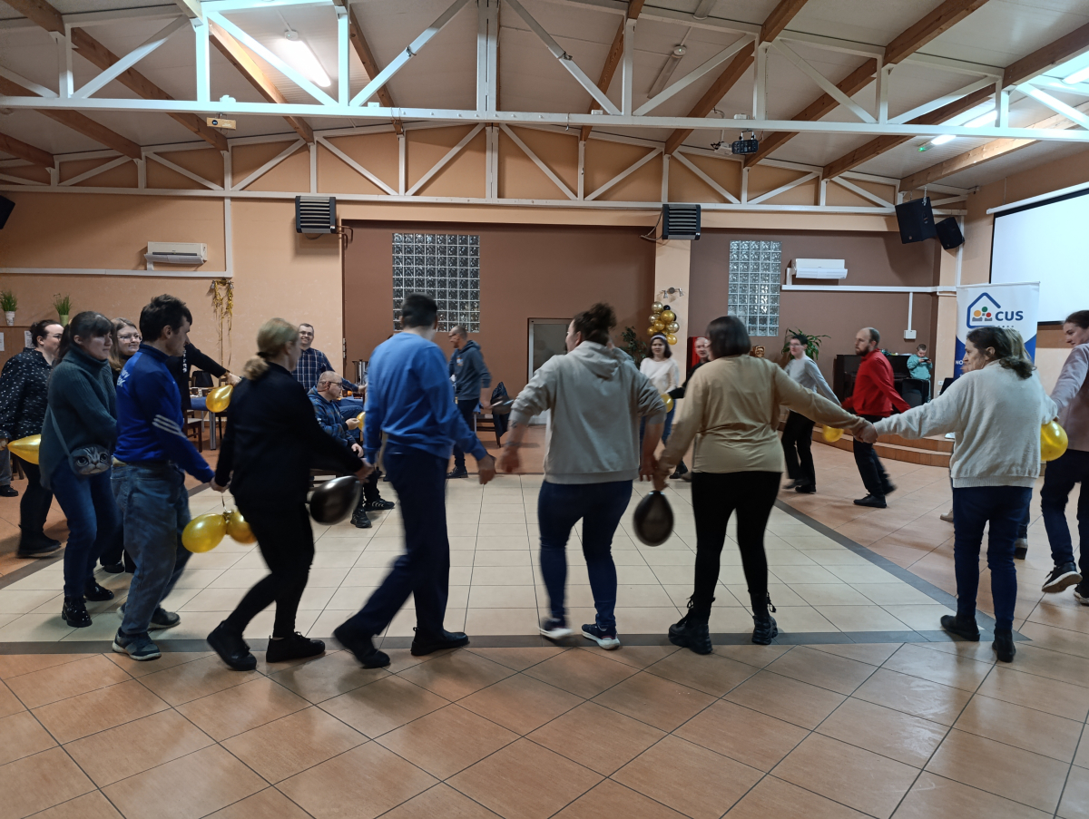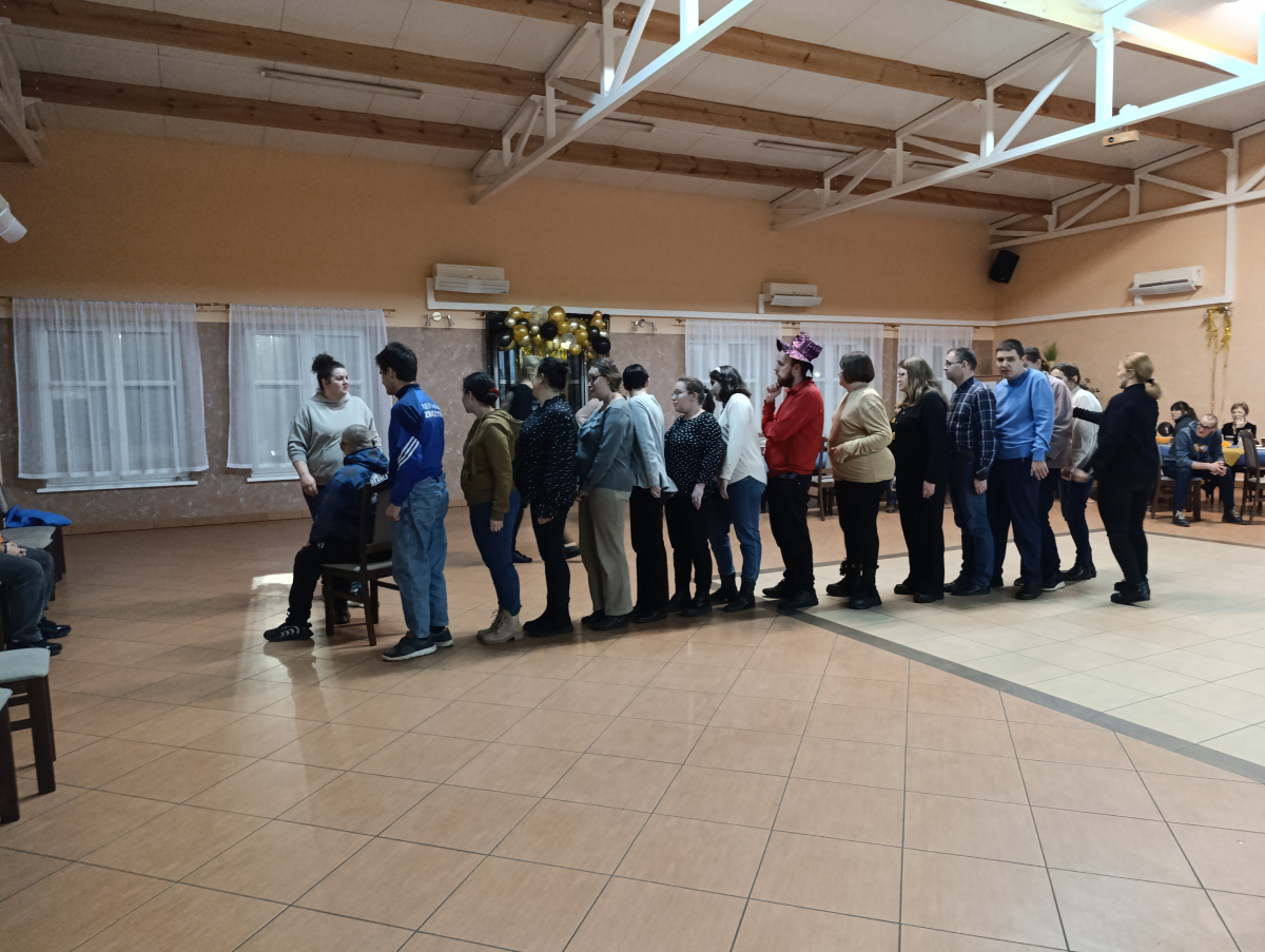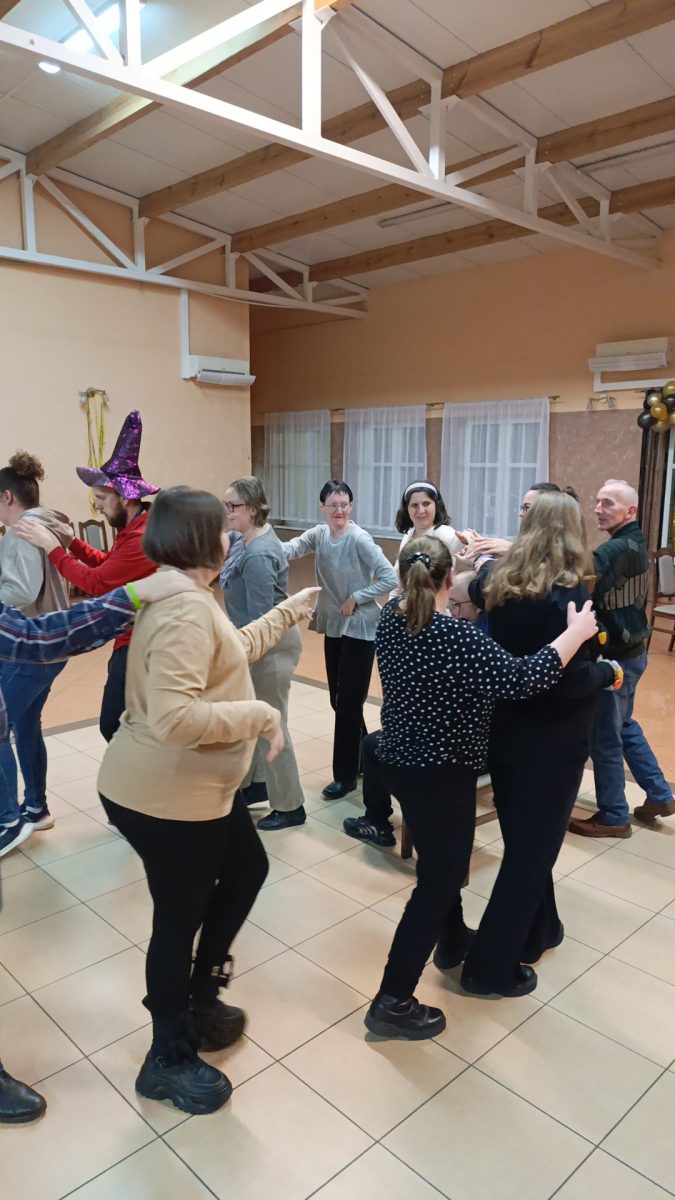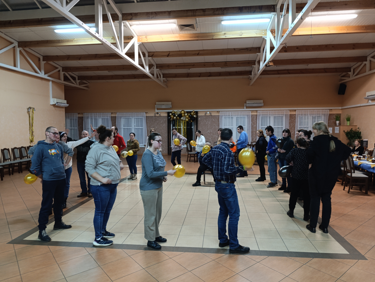 Już od pierwszych chwil wydarzenia panowała atmosfera pełna ciepła, życzliwości i pozytywnej energii. Uczestnicy chętnie angażowali się w rozmowy, zabawy i tańce, a na ich twarzach pojawiały się szczere uśmiechy. Spotkanie stało się doskonałą okazją do wzmocnienia więzi oraz integracji osób biorących udział w projekcie.