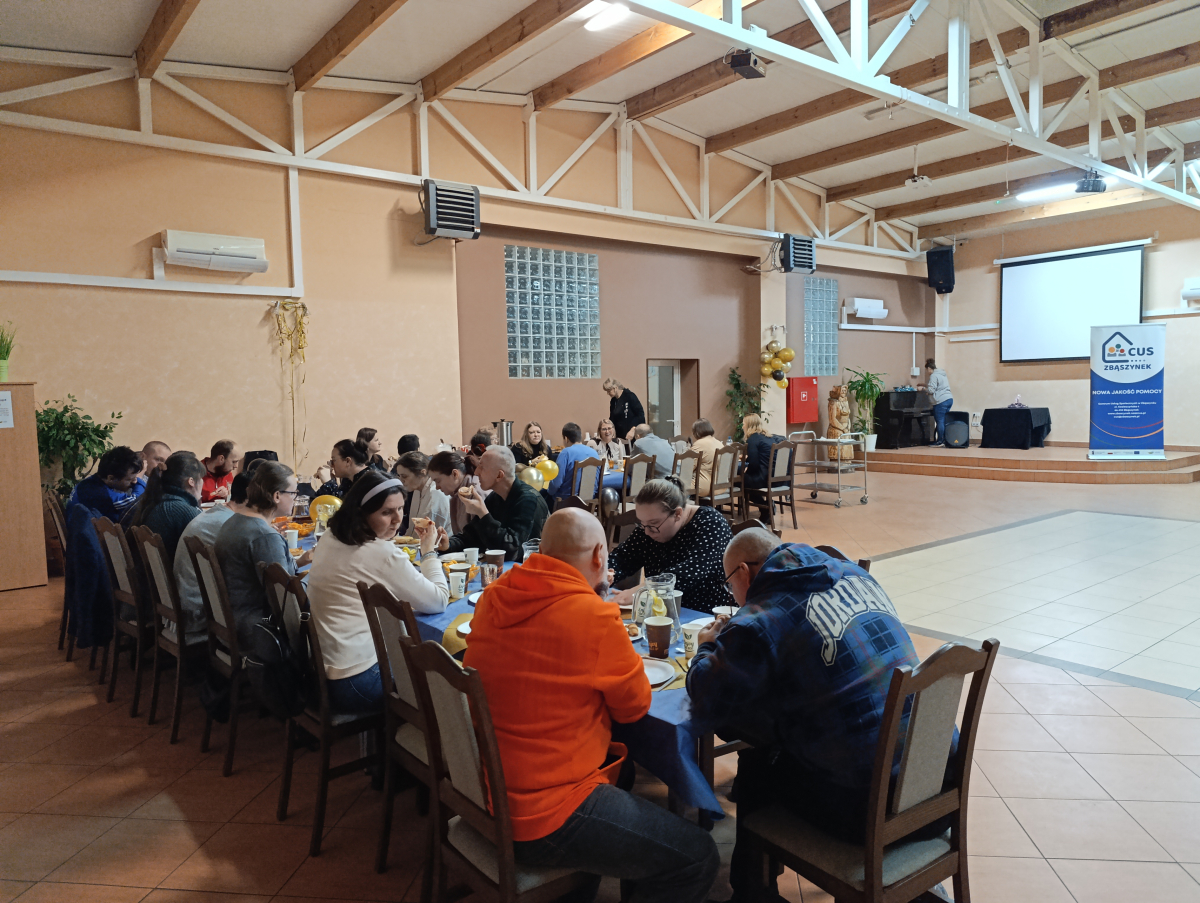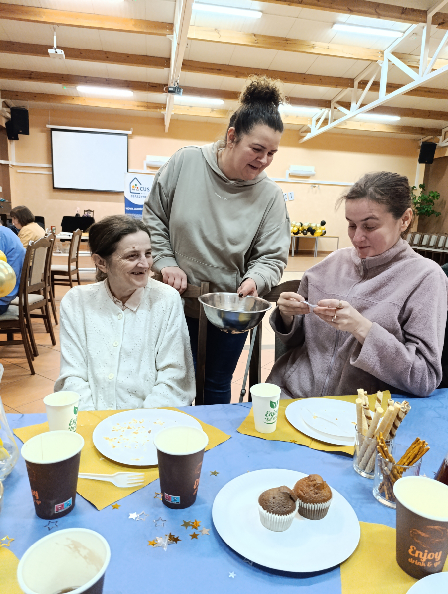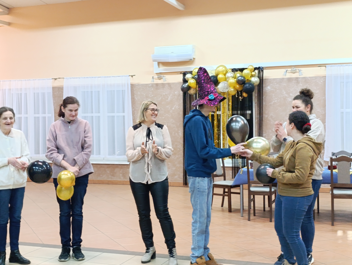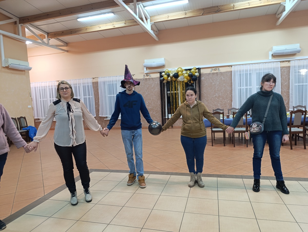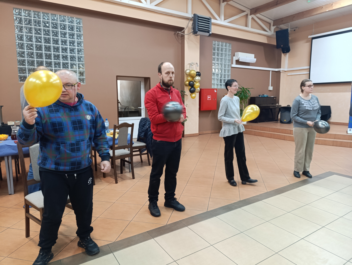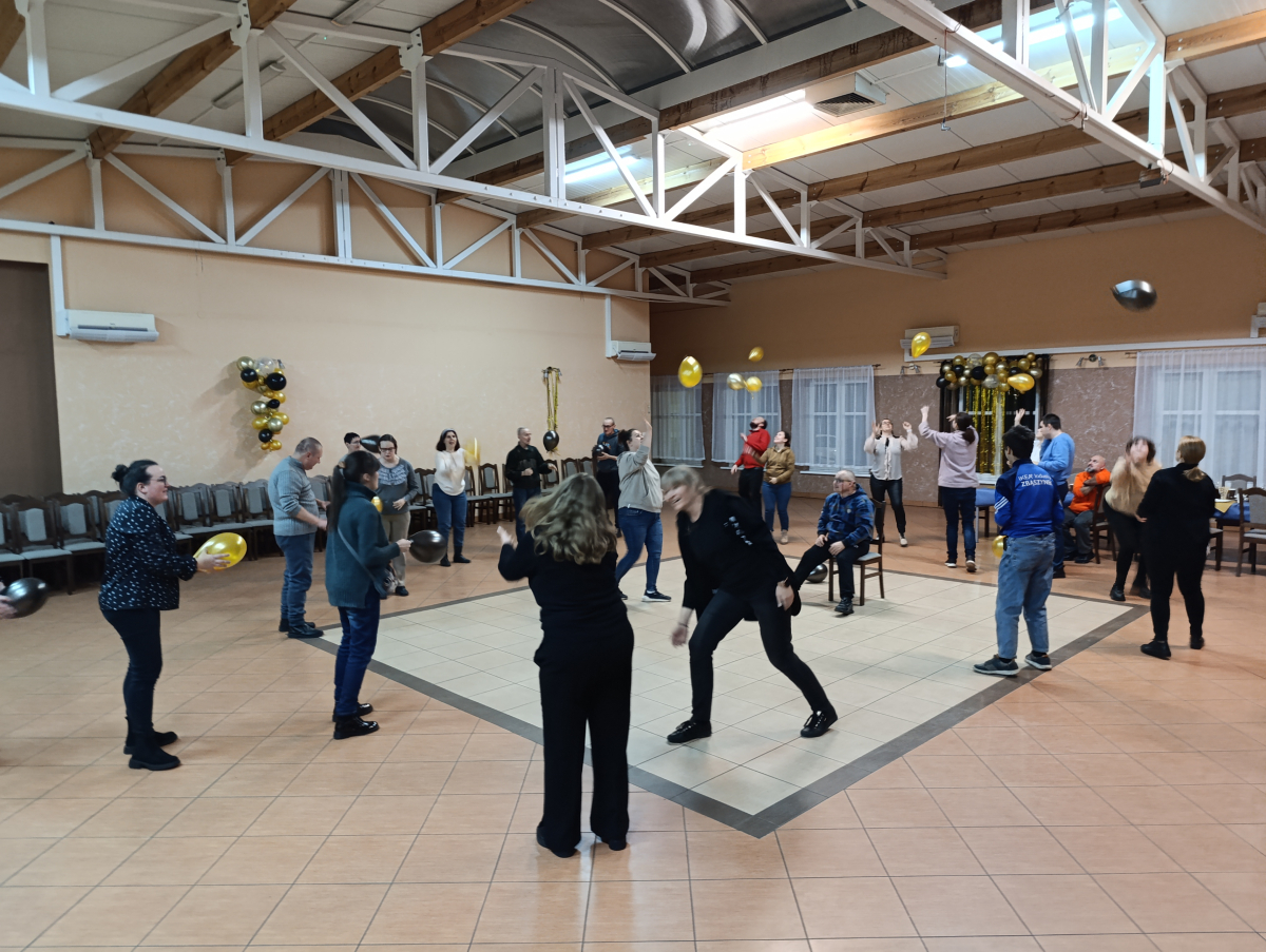 Już od pierwszych chwil wydarzenia panowała atmosfera pełna ciepła, życzliwości i pozytywnej energii. Uczestnicy chętnie angażowali się w rozmowy, zabawy i tańce, a na ich twarzach pojawiały się szczere uśmiechy. Spotkanie stało się doskonałą okazją do wzmocnienia więzi oraz integracji osób biorących udział w projekcie.