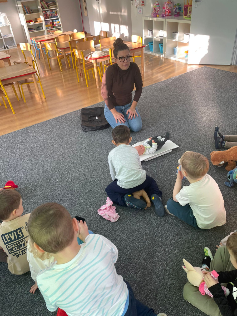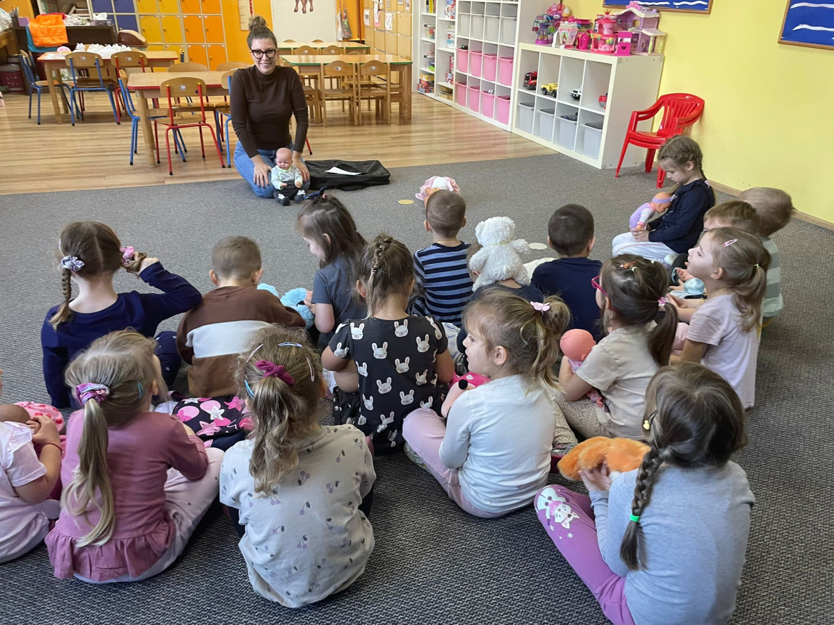 W dniu 11.12.2025 położna odwiedziła grupę 5latków w Niepublicznym Przedszkolu „Pod Muchomorkiem” w Zbąszynku. Zajęcia były pełne ciekawostek, praktycznych pokazów i rozmów dostosowanych do wieku przedszkolaków.