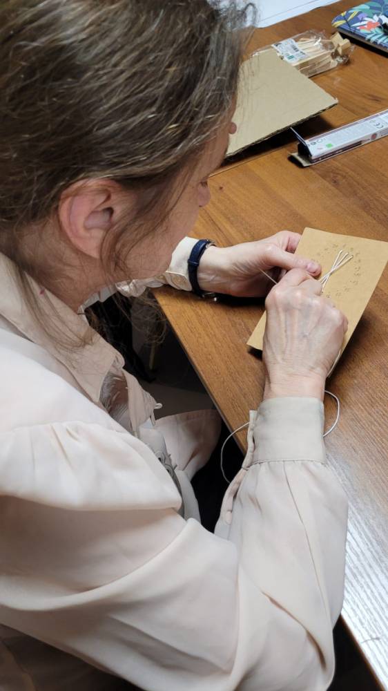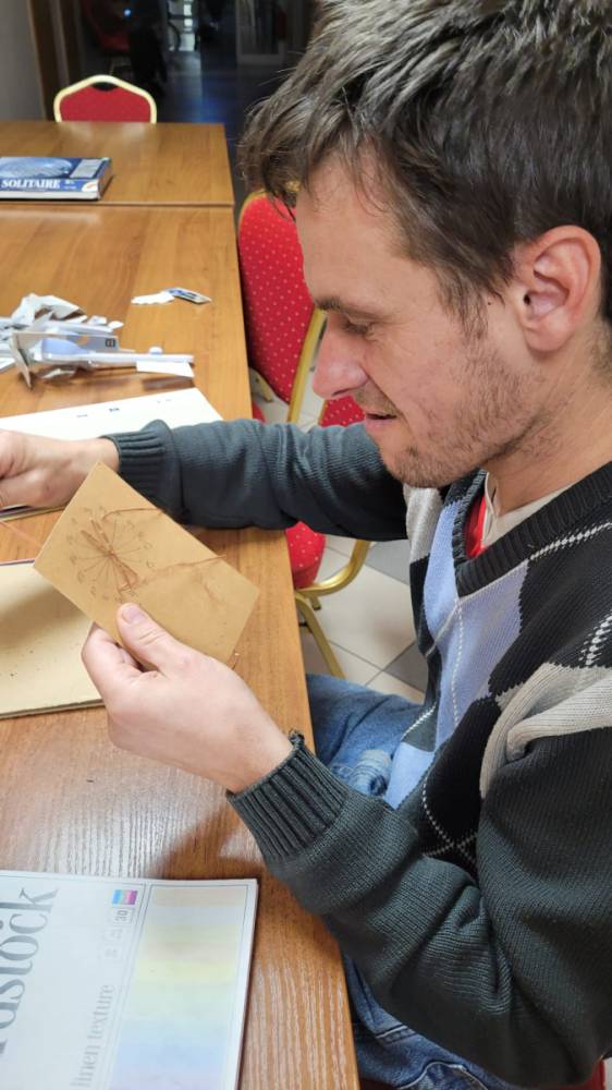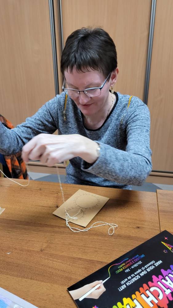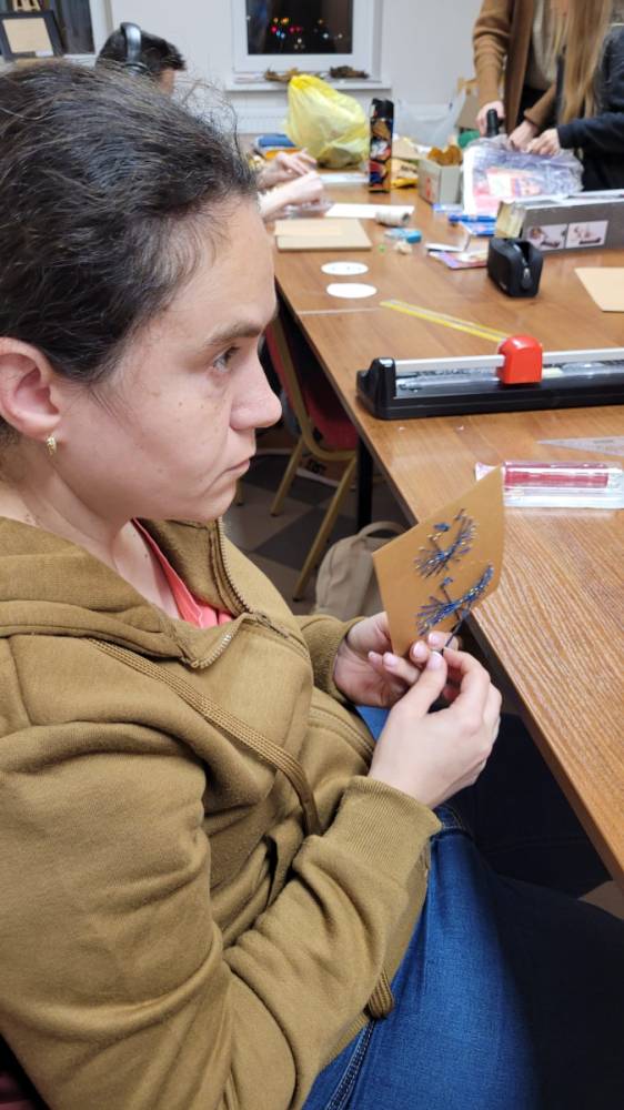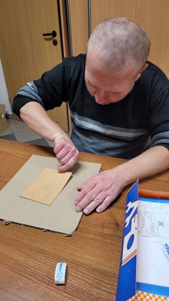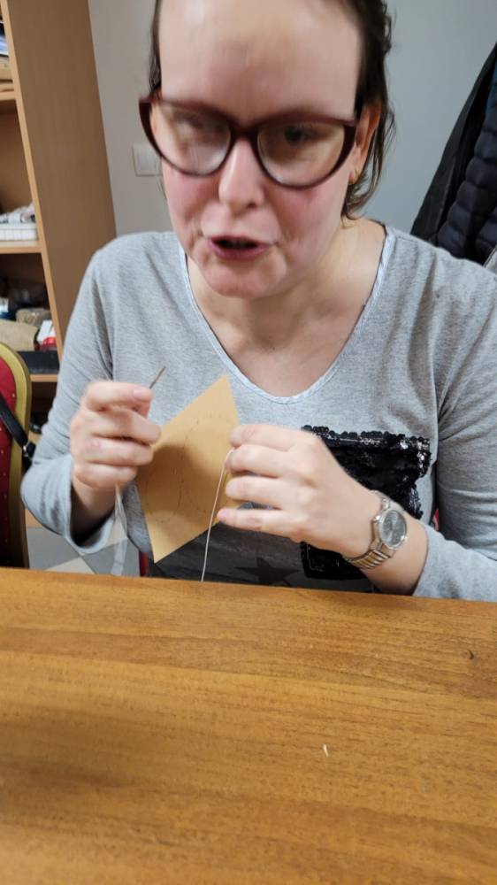 Na zajęciach wspomagających samodzielność i aktywność osób z niepełnosprawnościami, które odbyły się w dniu 13.11.2025 rozpoczęto przygotowywanie kartek świątecznych. Na pierwszy rzut poszły bałwanki - bardzo nietypowe, bo do ich stworzenia wykorzystano igły oraz ozdobne sznureczki. Choć praca wymagała precyzji i cierpliwości, efekty już teraz prezentują się pięknie. Powoli zaczynają przypominać prawdziwe bałwanki, a to dopiero początek świątecznych przygotowań.