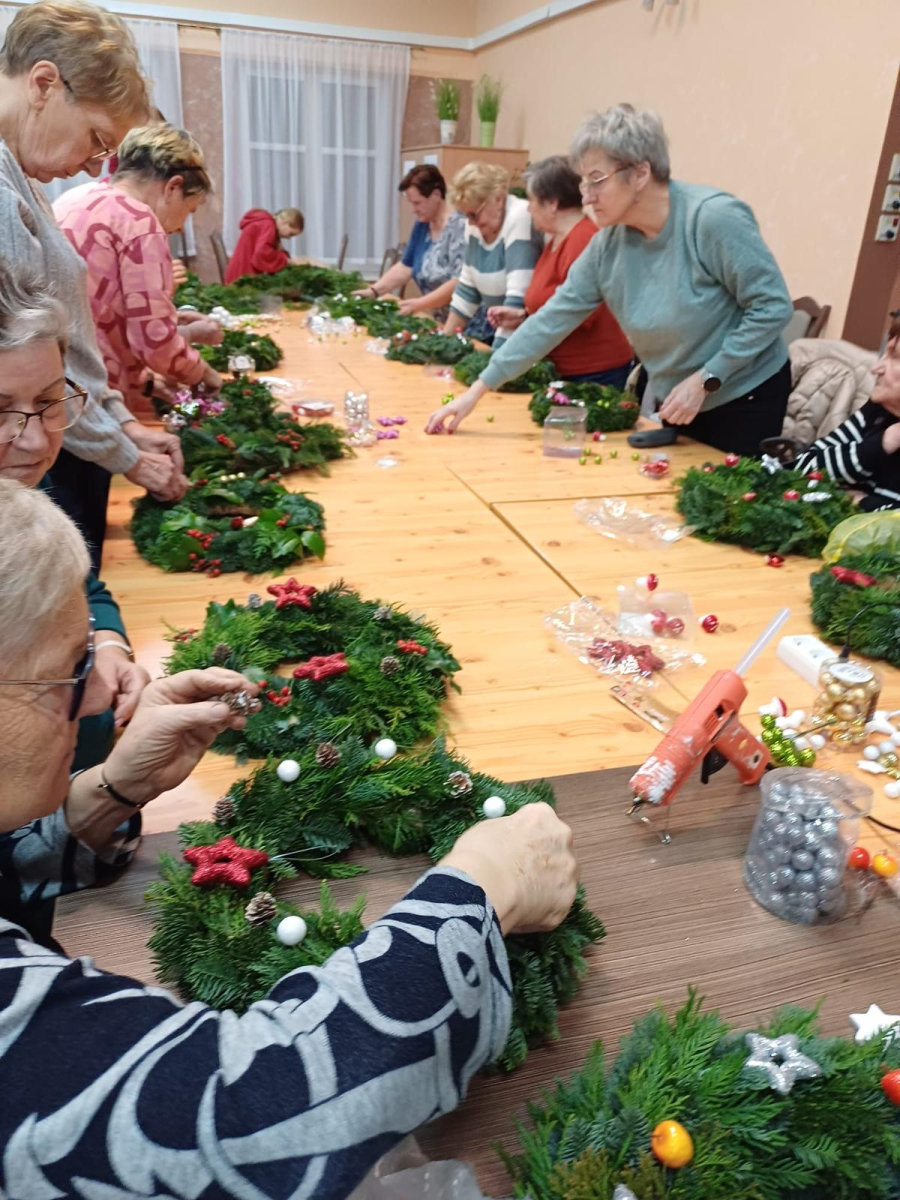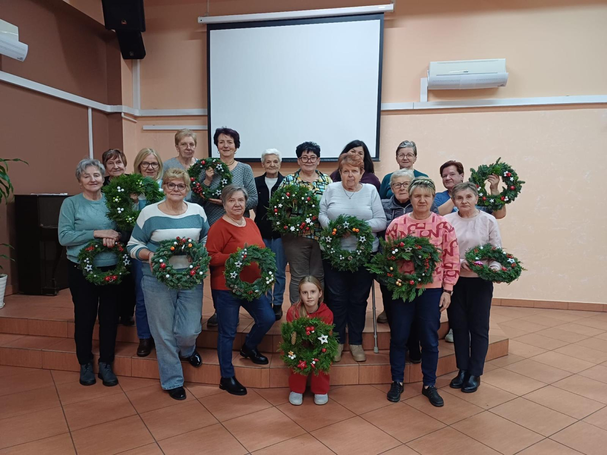 Wykonano świąteczne wianki pod kierunkiem Aurelii Wolińskiej-Waligóry, rozwijając kreatywność oraz zdolności manualne uczestniczek.