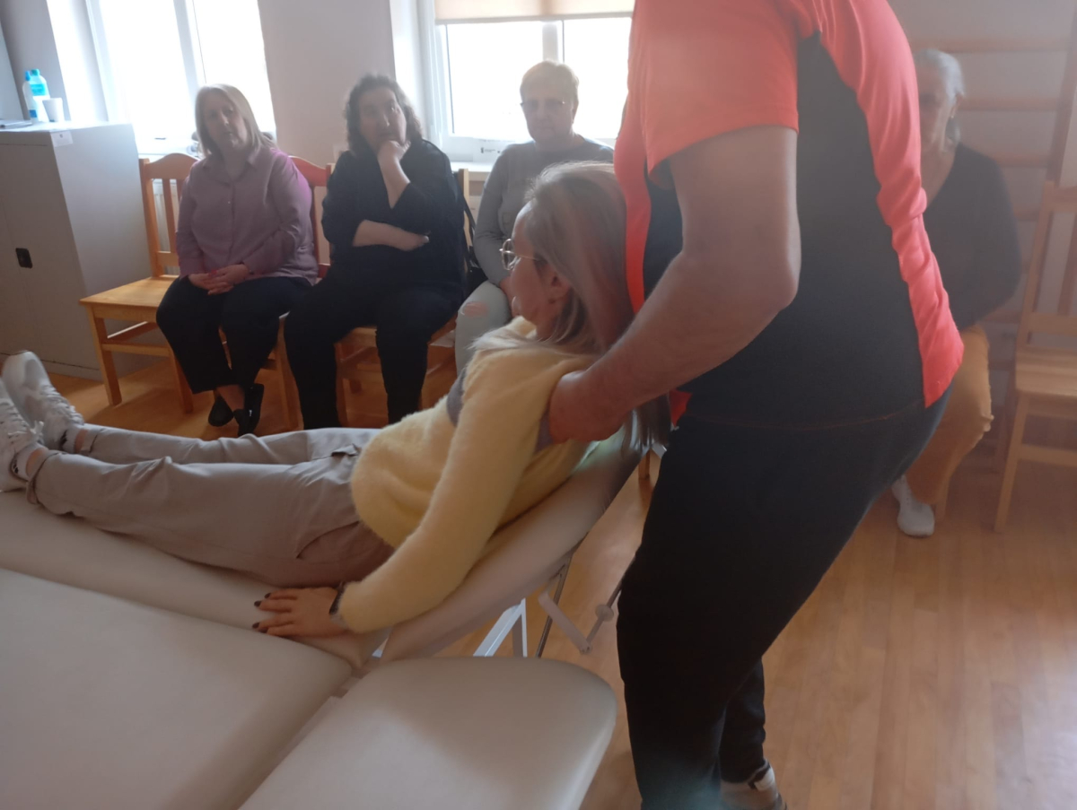 Spotkanie było także okazją do wymiany doświadczeń, dzielenia się wiedzą oraz utrwalenia wcześniej zdobytych umiejętności. Uczestnicy aktywnie włączali się w zajęcia, omawiając sytuacje z codziennej opieki nad swoimi bliskimi.