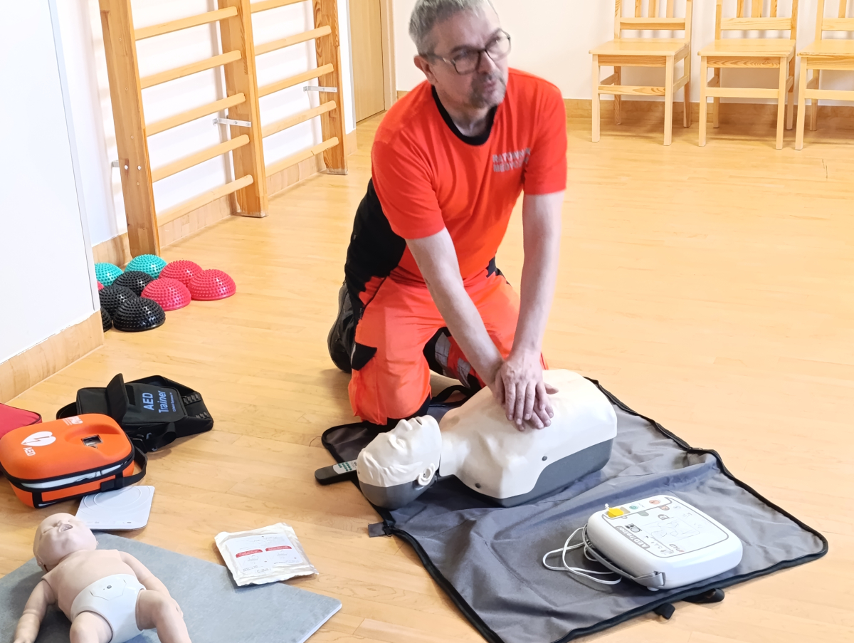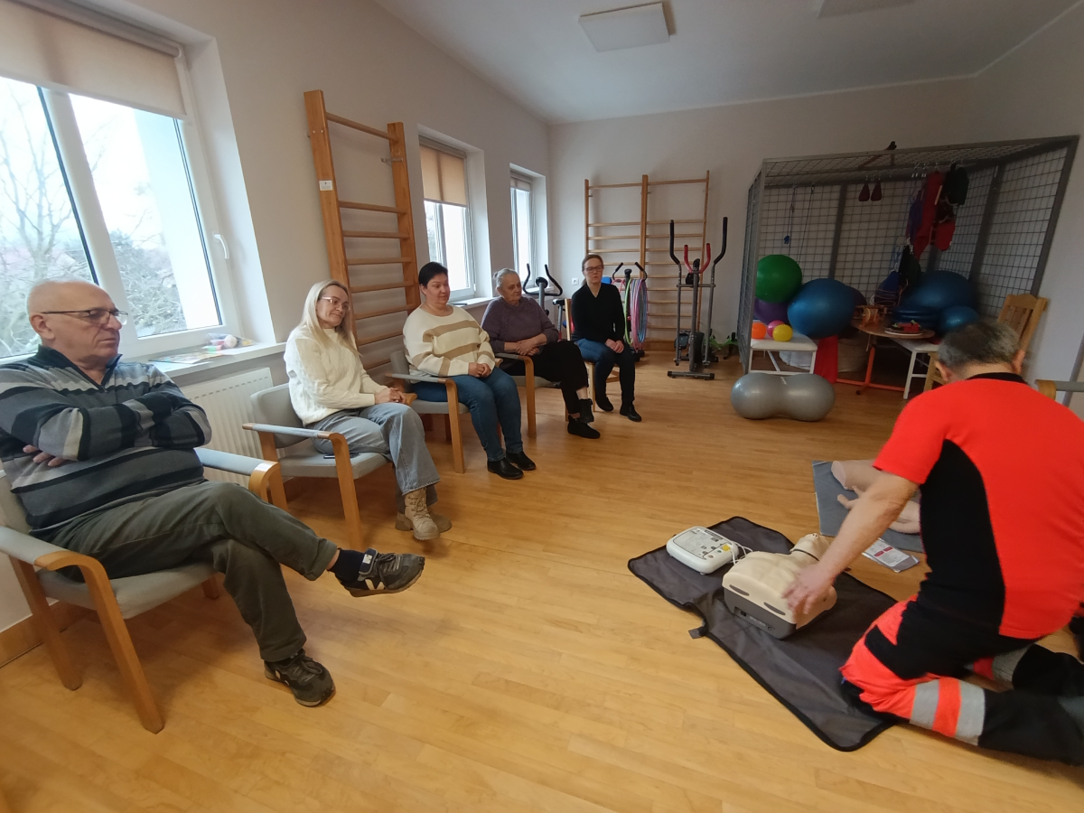 Pierwsza grupa brała udział w zajęciach praktycznych, podczas których uczyła się udzielania pierwszej pomocy na fantomach, wykonywania masażu serca oraz korzystania z AED. Uczestniczki aktywnie włączały się w ćwiczenia i zadawały pytania dotyczące omawianych zagadnień.