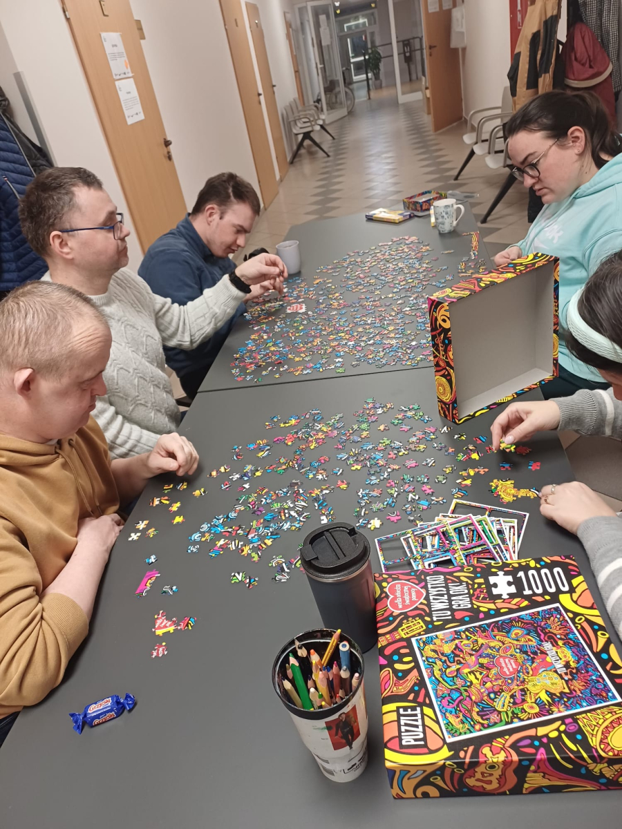 Na zajęciach wspomagających samodzielność i aktywność osób z niepełnosprawnościami w lutym 2026 realizowano różnorodne działania o charakterze integracyjnym, artystycznym i edukacyjnym.
