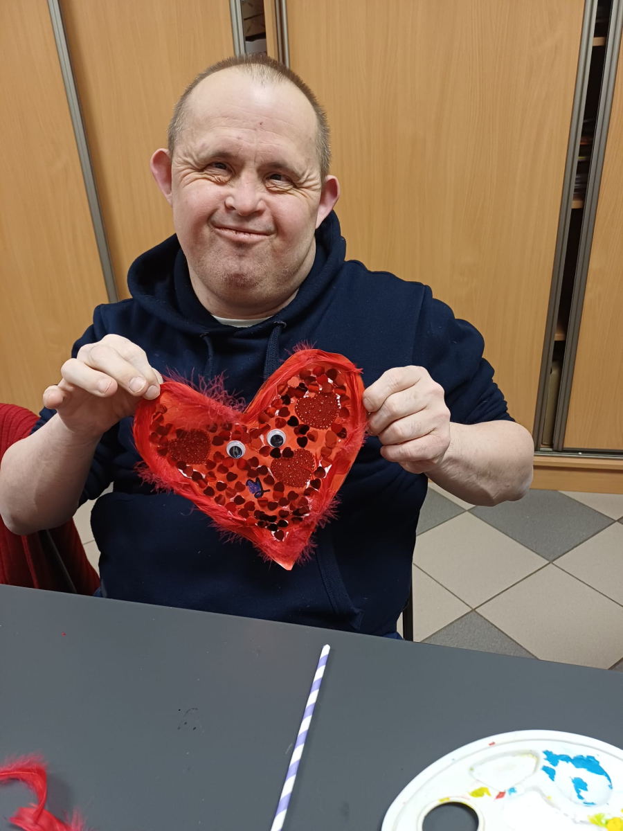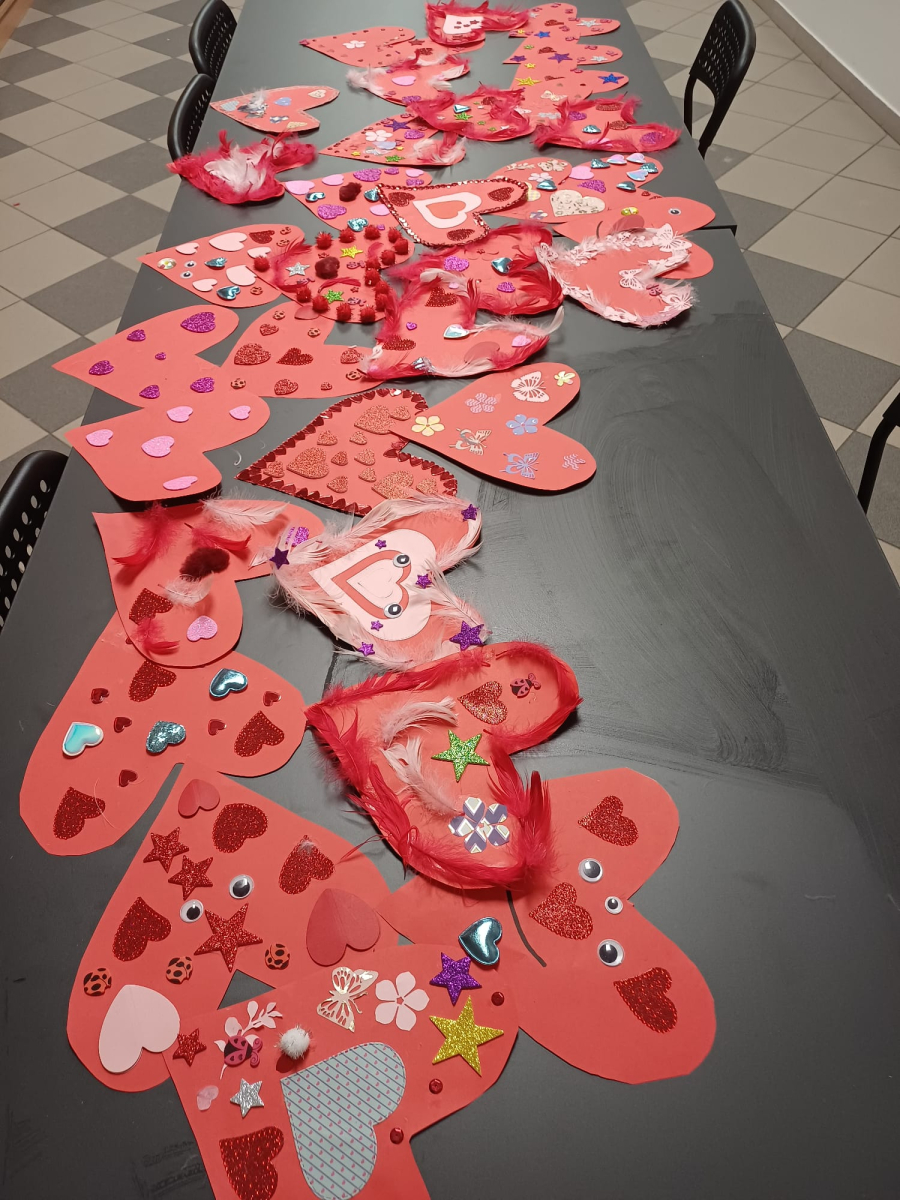 Istotnym elementem aktywności były zajęcia tematyczne związane z Walentynkami – uczestnicy przygotowywali papierowe serca oraz angażowali się w działania wzmacniające relacje i życzliwość w grupie.