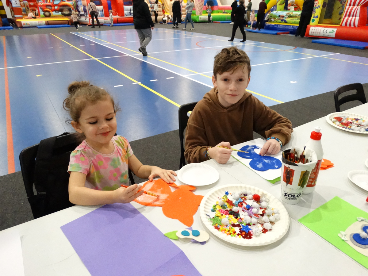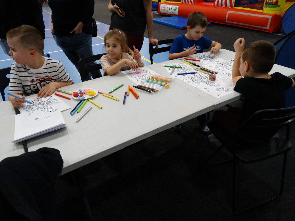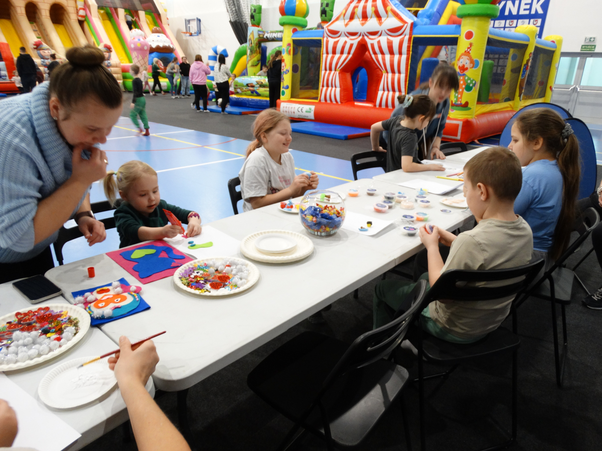 - kolorowanki i mnóstwo materiałów plastycznych – brokatowe naklejki, kolorowe pomponiki i koraliki… wszystko poszło w ruch!