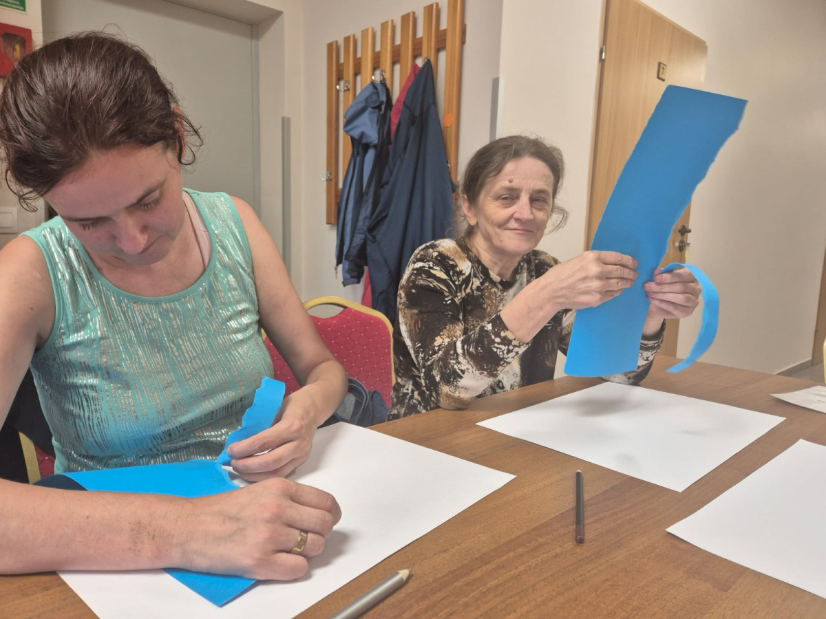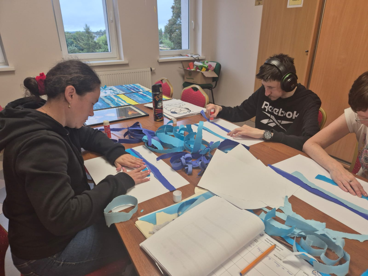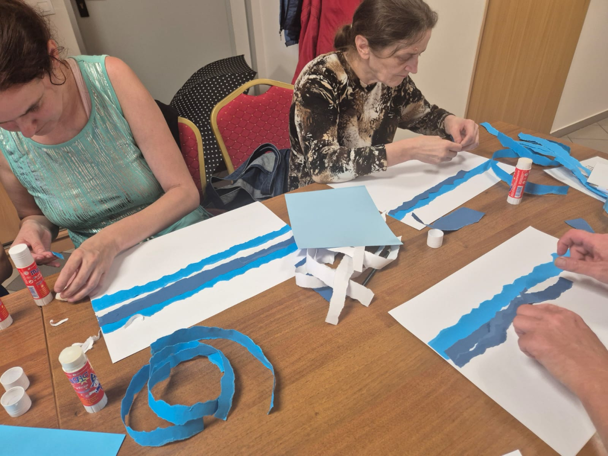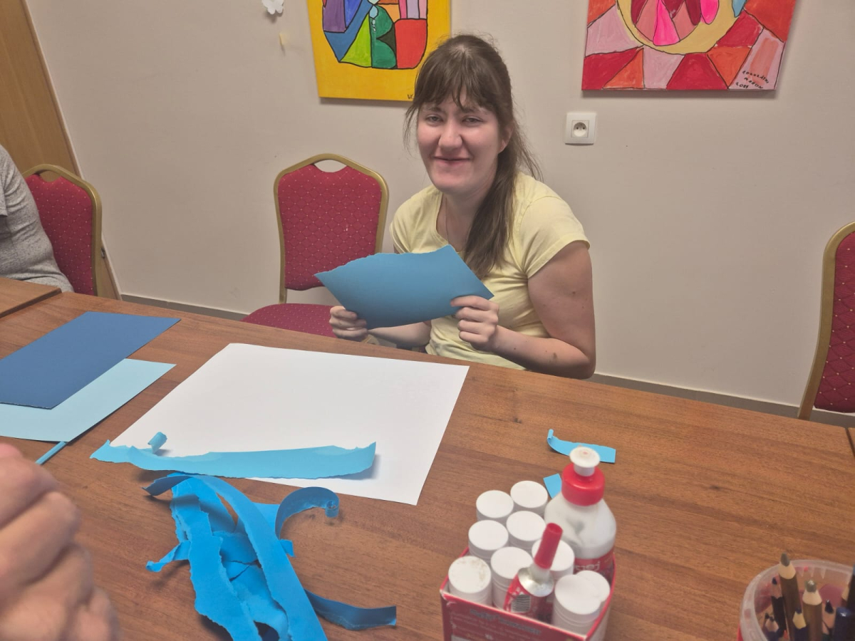 02.09.2025 rozmawiano o letnich przygodach, powstały wydzieranki z nadmorskim krajobrazem.