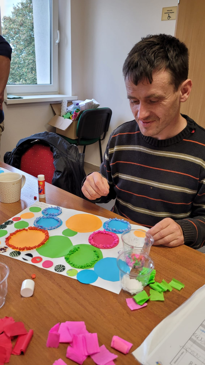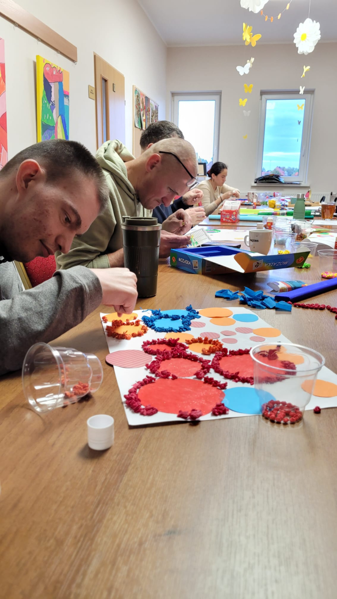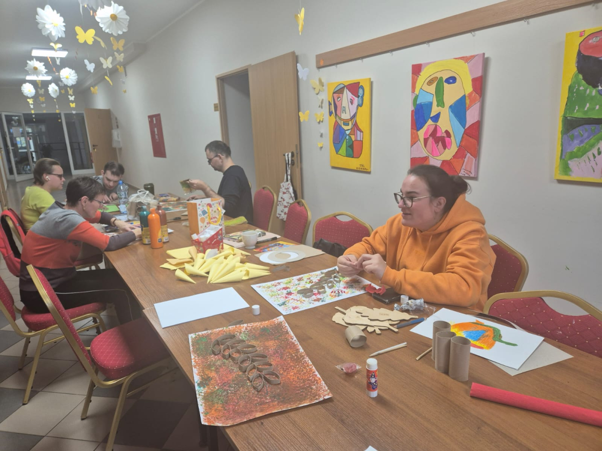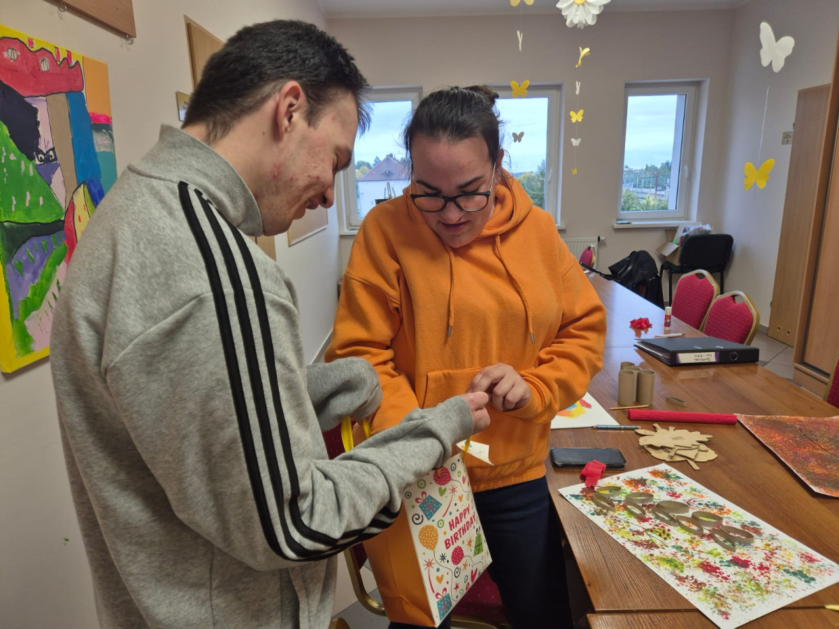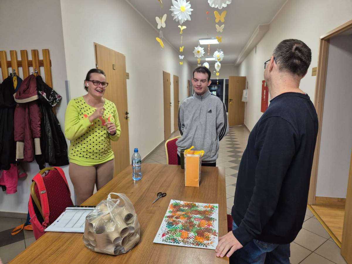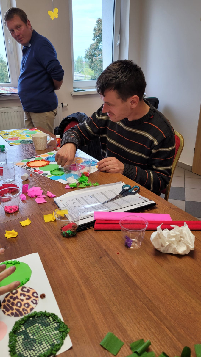 7 października 2025r. Zajęcia wspomagające samodzielność i aktywność osób z niepełnosprawnościa mi w świetlicy środowiskowej upłynęły w wyjątkowej atmosferze. Uczestnicy z radością wspominali poranny wyjazd do Kręcka i spotkanie integracyjne z uczniami klas przysposabiających do pracy z SOSW w Zbąszyniu. Wspomnienia rozmów i wspólnych zabaw długo jeszcze wywoływały uśmiechy na twarzach.
