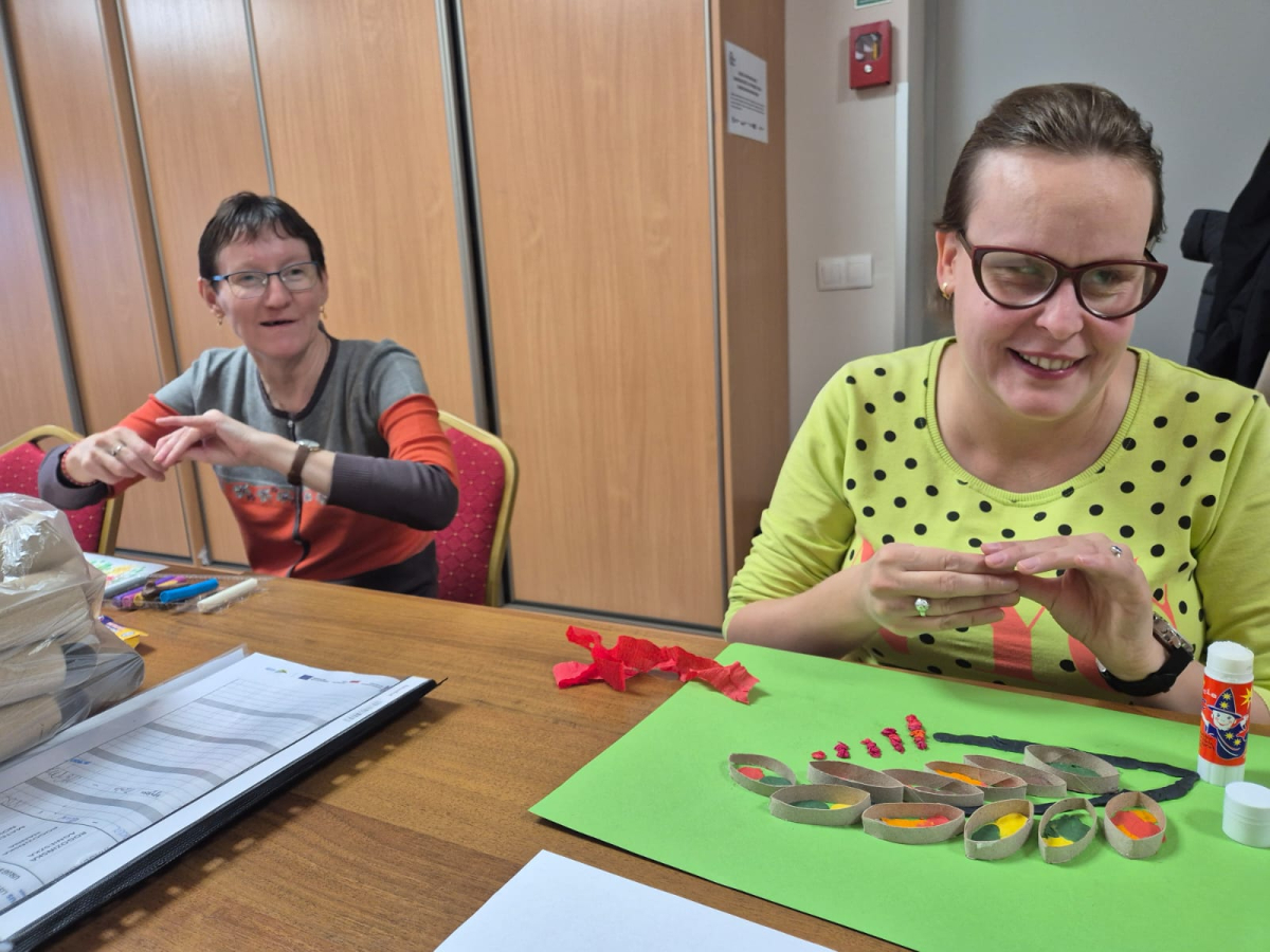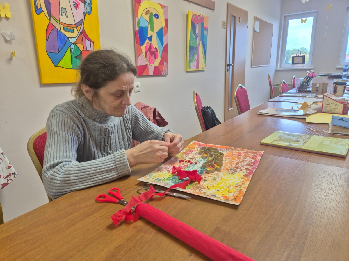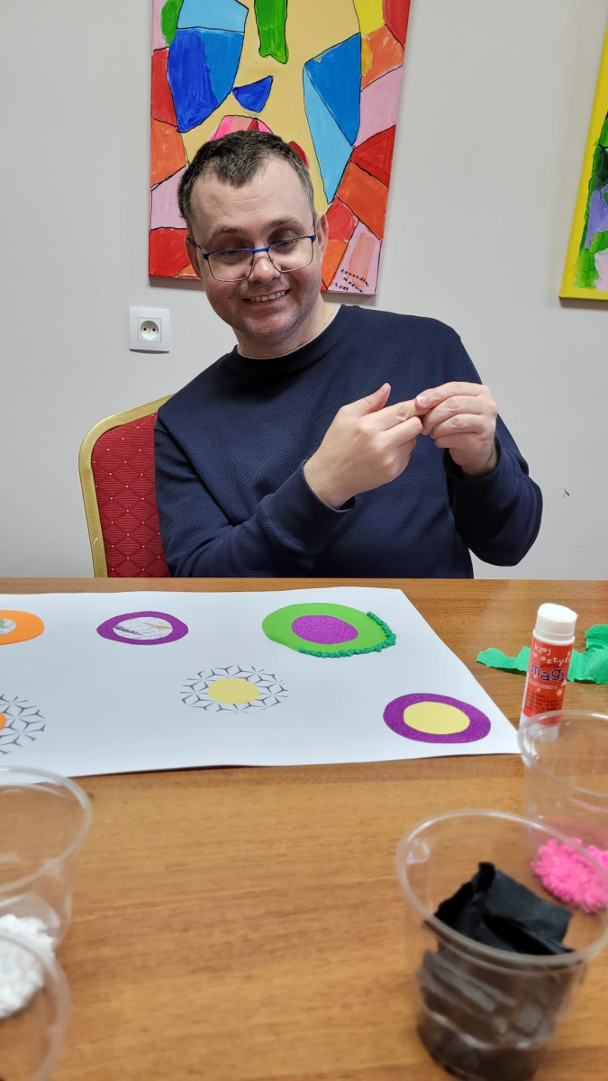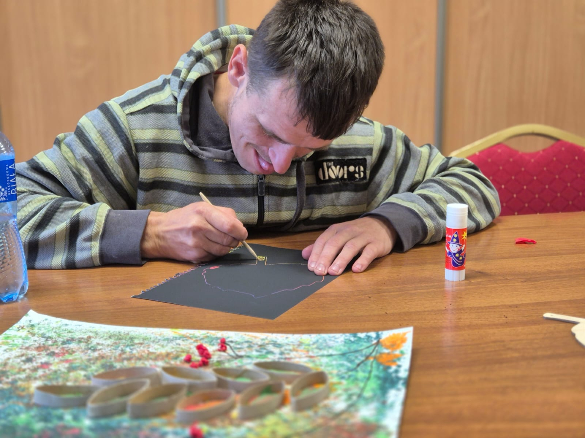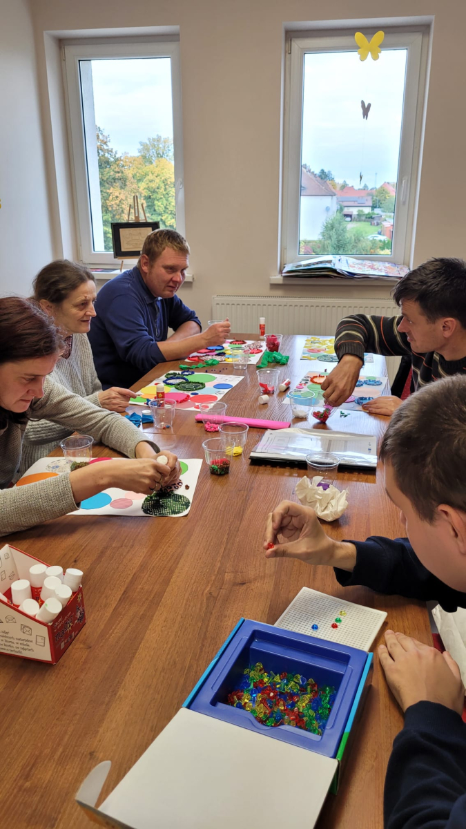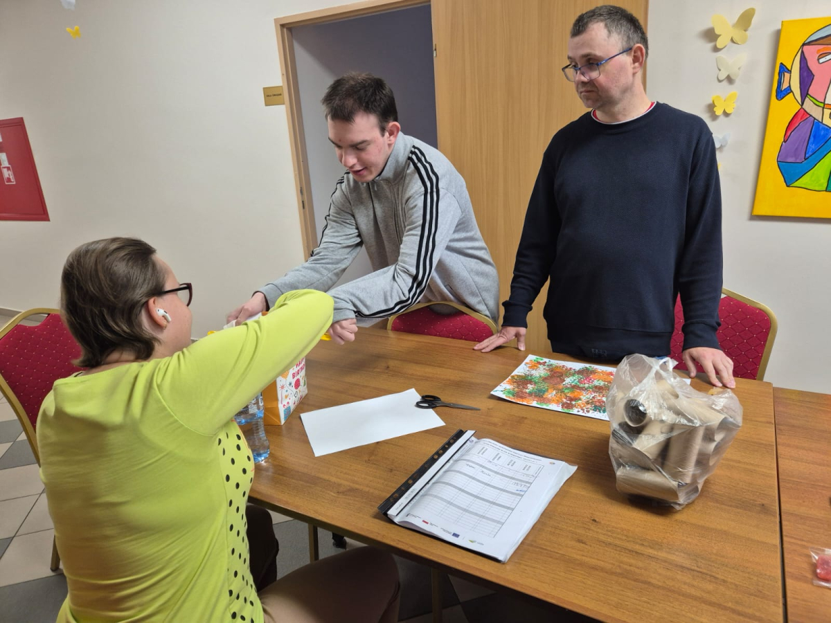7 października 2025r. Zajęcia wspomagające samodzielność i aktywność osób z niepełnosprawnościa mi w świetlicy środowiskowej upłynęły w wyjątkowej atmosferze. Uczestnicy z radością wspominali poranny wyjazd do Kręcka i spotkanie integracyjne z uczniami klas przysposabiających do pracy z SOSW w Zbąszyniu. Wspomnienia rozmów i wspólnych zabaw długo jeszcze wywoływały uśmiechy na twarzach.