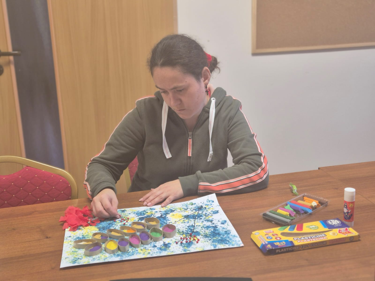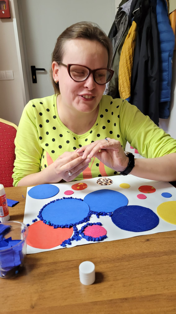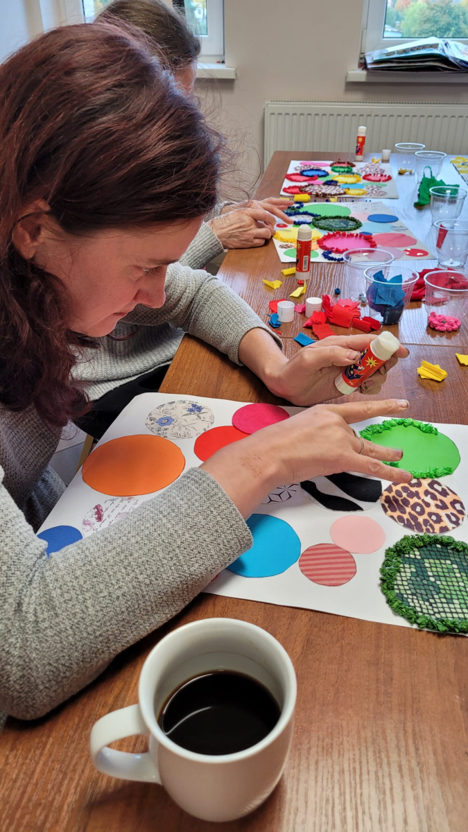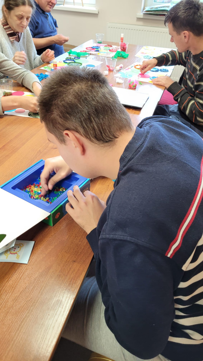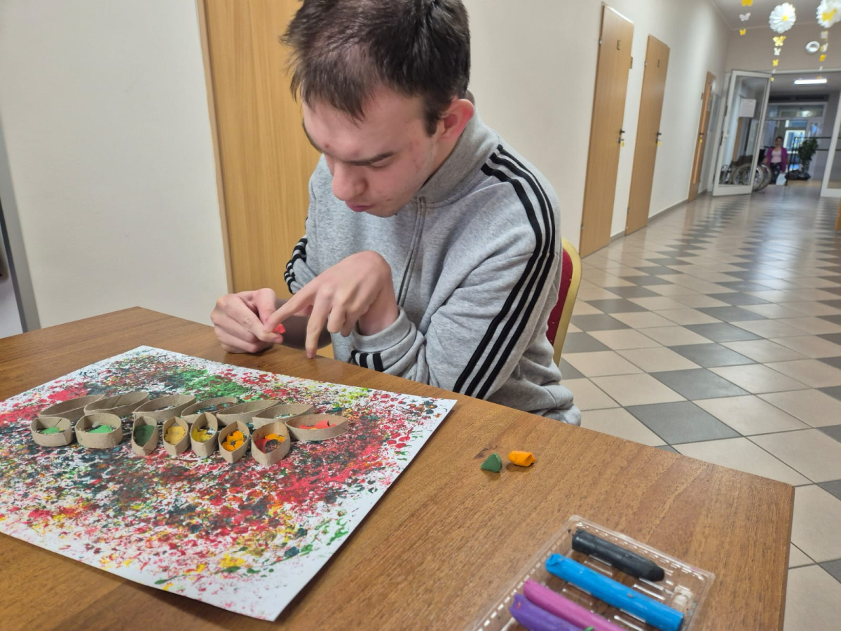 8 października 2025r. w świetlicy panowała twórcza, ale i rozmowna atmosfera. Podczas pracy nad abstrakcyjnymi „kropkami” toczyły się ciekawe rozmowy, a czas mijał niezwykle przyjemnie. Natalia i Sebastian jako pierwsi ukończyli swoje dzieła – to znak, że już wkrótce wszystkie prace będą gotowe, a nasza świetlica zamieni się w pełną barw, wirującą galerię.