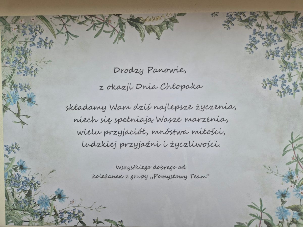30 września 2025 w trakcie zajęć wspomagających samodzielność i aktywność osób z niepełnosprawnościami w świetlicy środowiskowej „Pomysłowy Team” świętowano Dzień Chłopaka. Była to doskonała okazja do złożenia panom najlepszych życzeń - spełnienia marzeń, wielu przyjaciół i samych życzliwych osób wokół. Na uczestników czekały drobne niespodzianki, które wywołały sporo uśmiechu.